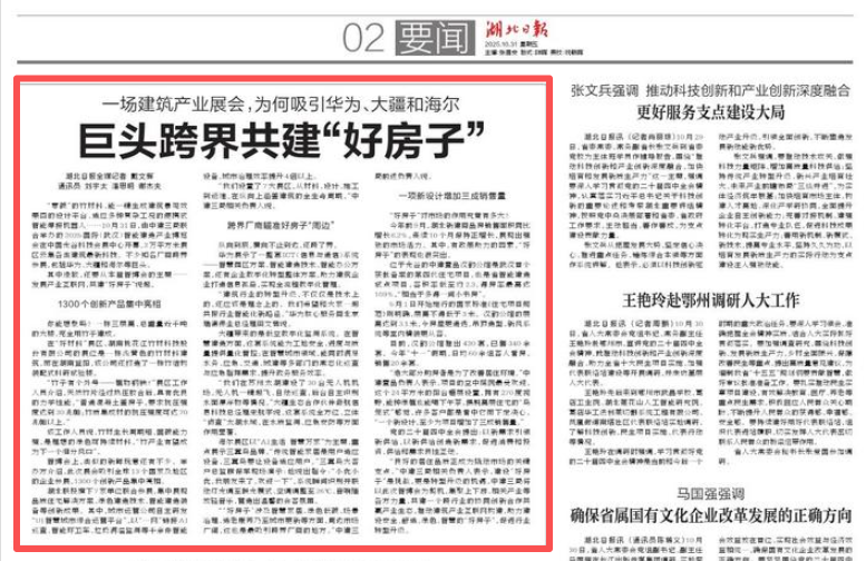 湖北日報:一場建筑產業展會,為何吸引華為、大疆和海爾巨頭跨界共建“好房子”